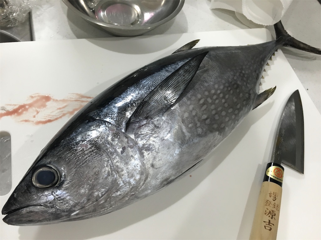といっても、ツナを作る為に巨大なマグロを買ってくるわけにもいかないし、柵どりされているものをツナに変えても、キッチンラボ的にはいまいちだし!とうことで、ヨコワという、クロマグロの幼生を仕入れてきました。