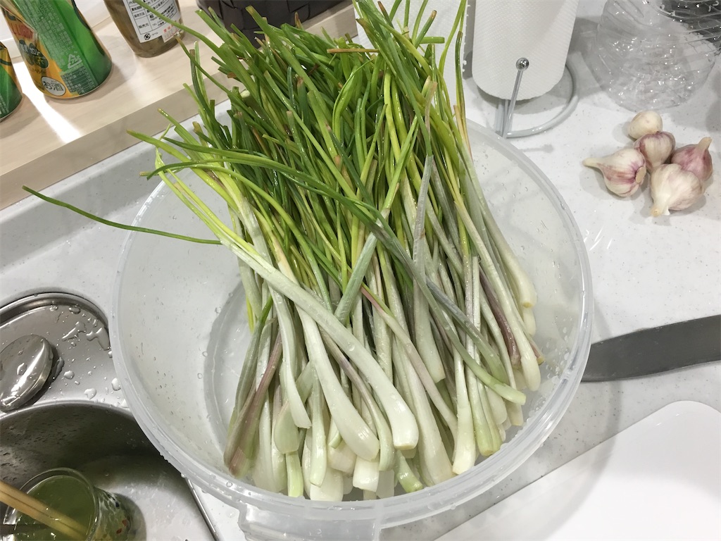 これも香りが強くておいしいのですよね。特に新ニンニクなので水気が多くジューシーー。これは一番おいしいときに、ニンニク醤油のため漬け込みます。